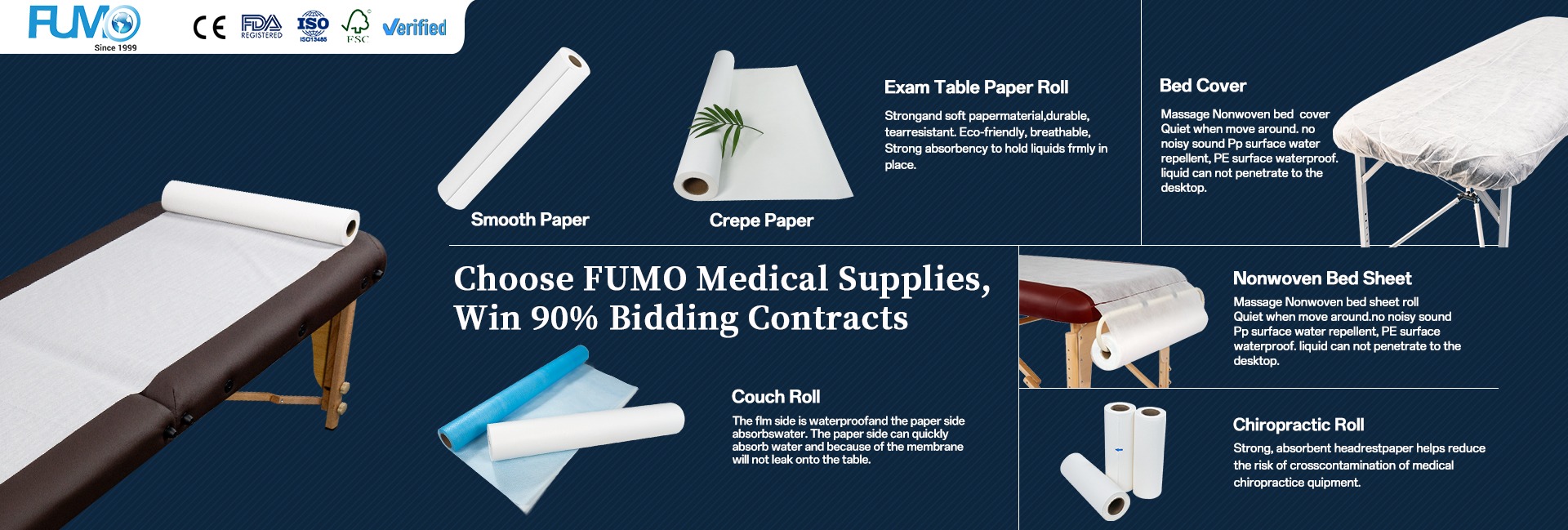FUMO 인기있는 맞춤형 의료 종이 롤 환자 보호 병원 스파 클리닉을위한 일회용 의료 시험 테이블 종이 롤